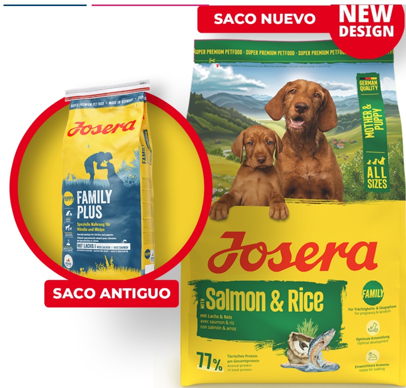 - JOSERA MOTHER & PUPPY SALMON & RICE (antes FAMILY PLUS CON SALMON) – LINEA SPECIAL – Alimento super premium para perros